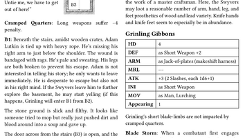 One of the neat challenges in this jam was that it had a hard limit of two-pages. Trying to cram in enough detail to make this fill lived-in and still include game mechanics (stat blocks, loot values) and such was tough. A lot of editing and rewriting happened. Along the way it became obvious to me that I really wanted two versions of the output: the two-page jam version that is perfectly playable and works fine, and an expanded “full” version that has room for more lore, extra details, and additional GM options.